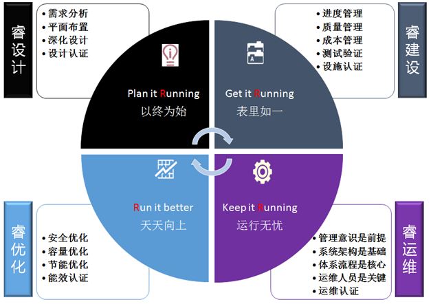 睿建智维立志成为 数据中心基础设施“全生命周期服务”和“节能升级服务”最值得信赖的合作伙伴,专注于机房全生命周期管理和客户体验,提供专业的整体服务解决方案和节能升级方案,专心为您实现机房的永续运行和高效运行。
